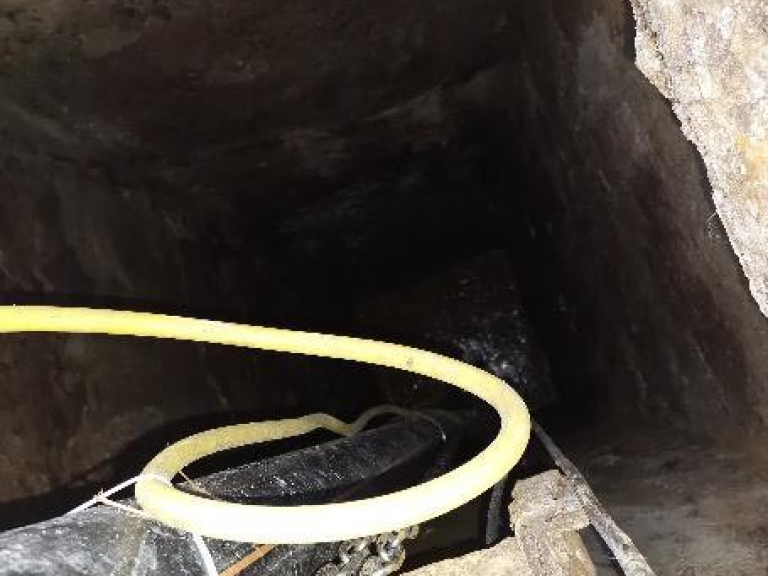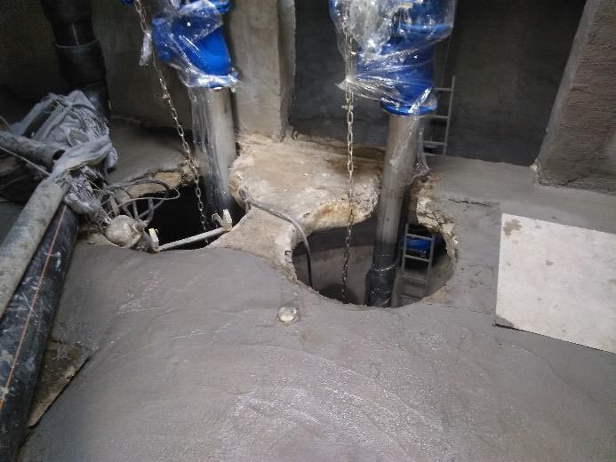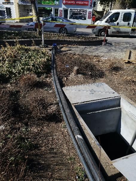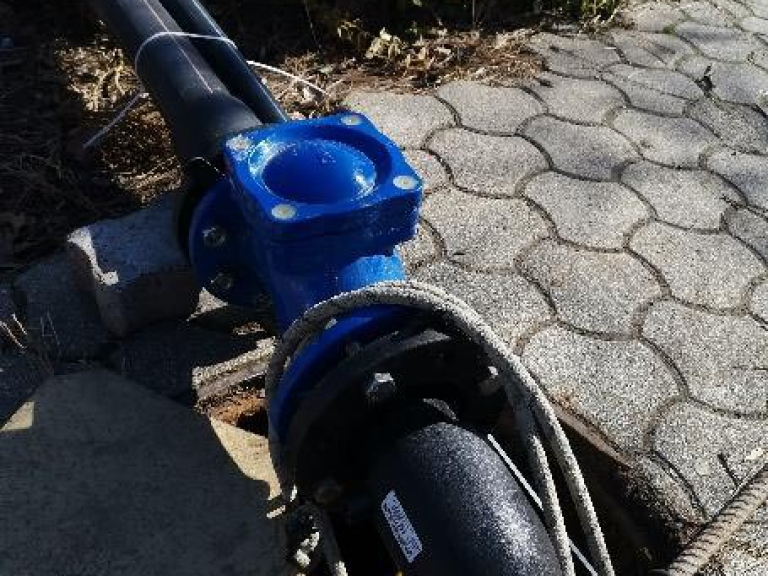 - A munkavégzés feltételeinek kiépítése: A fogadó aknában az elfolyó cső dugózása RWT KFT mobil, ideiglenes szennyvíz TSURUMI búvárszivattyú beépítése AGY100 tisztítóaknába, provizor KPE nyomócsővezeték kiépítése D90 a meglévő D160 közösített nyomóvezeték ágába épített csatlakozási pontra. A közösített nyomócső ágon kialakított provizor csatlakozási pontra bBeépítésre került 1db DN200/80 HAWLE T-idom 1db DN200 AVK tolózár NBR, 1db AVK DN80 tolózár 1db D225/D160 KPE EF karmantyú+hegtoldat +DN200 PP karima. Ideiglenes működtetés a meglévő vezérlőszekrényből 1 szivattyús provizor üzemre kiépítve, 2db úszókapcsoló beépítésével (védőcsőben kiépítve az elektromos vezetékek a provizor üzemhez).
