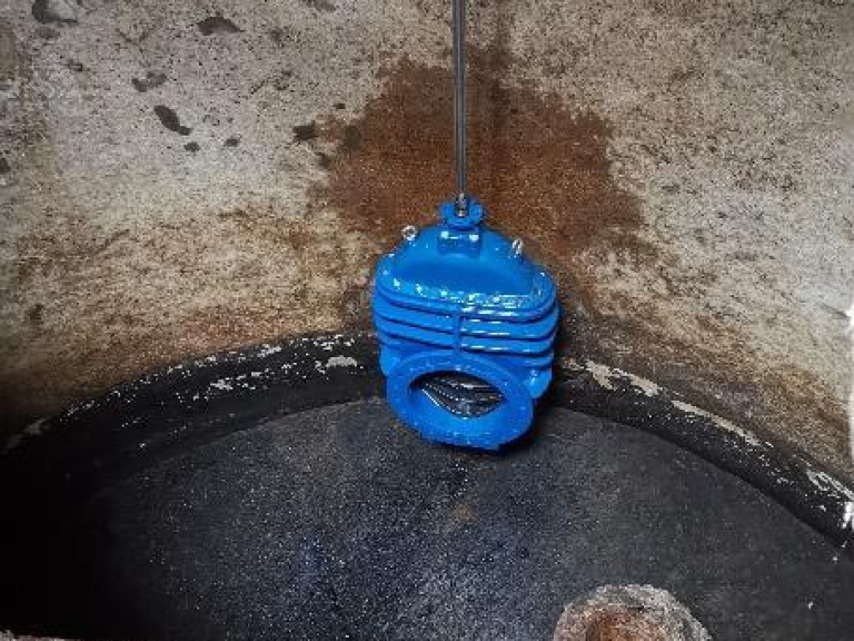 - 1db AVK DN500 zsiliptolózár beépítése meglévő elbontásra kerülő tolózár helyére gravitációs bekötéshez berendezés gyártása, telepítése (KO alátámasztás + kezelőszár + T-kulcs)